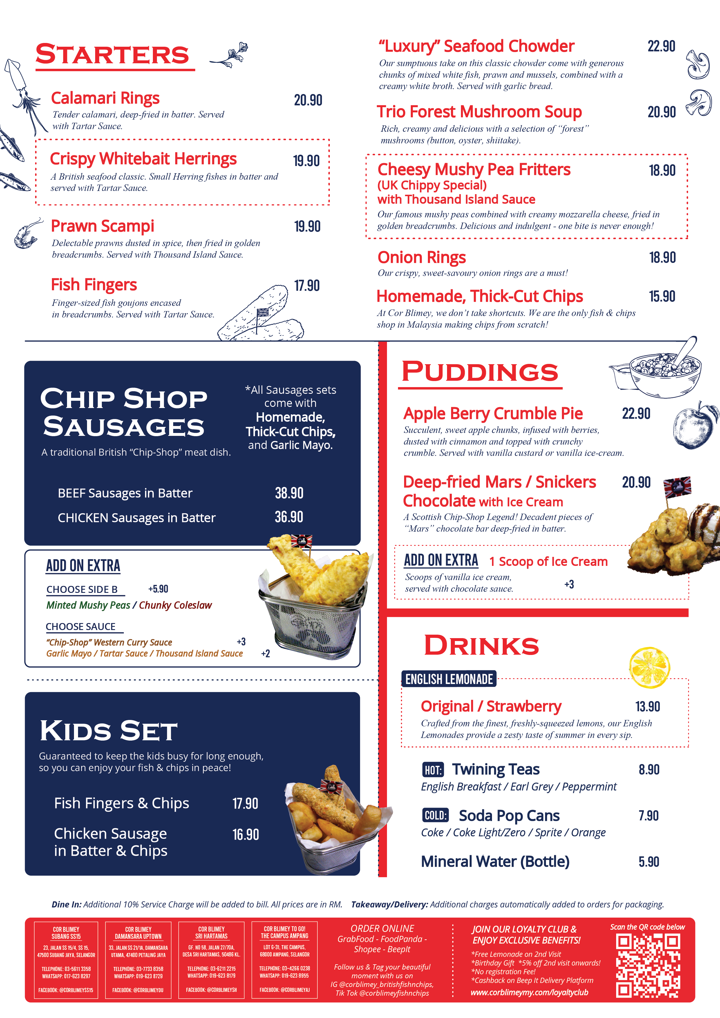 The love for Cor Blimey spread fast. Malaysians embraced the hearty flavors, the crispy batter, and, most importantly, the proper thick-cut chips. The success of the first outlet led to the opening of Damansara Uptown in 2017 and Hartamas in 2019. And now, in 2025, Cor Blimey is bringing its new Fast & Express concept to Ampang, making it even easier to get your hands on real British fish and chips, anytime.